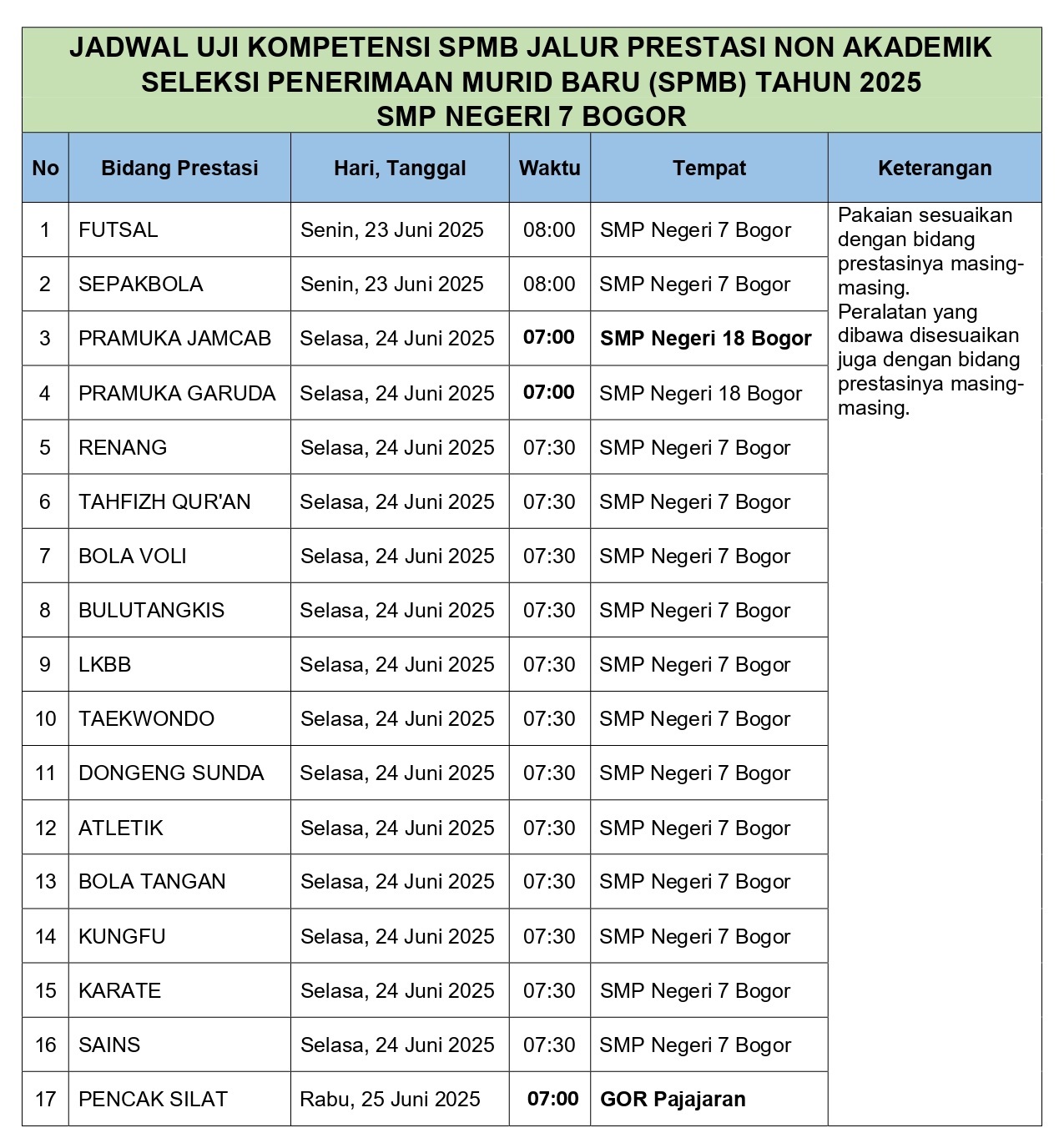 - Mengambil nametag di SMP Negeri 7 Bogor pada Senin, 23 Juni 2025 pukul 09:00.